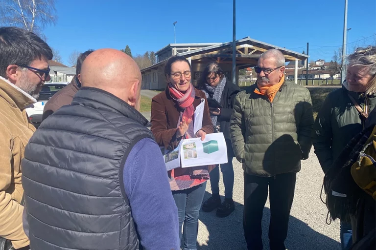 Au Rouget-Pers, Simon Teyssou et Anaëlle Pacaud ont présenté le Plan Guide, outil stratégique d’aménagement respectant l’environnement et le patrimoine. La visite du bourg a illustré la mise en œuvre de ce document à travers des aménagements précis : ripisylve, mise en valeur de bâtiments anciens, requalification d’espaces publics.